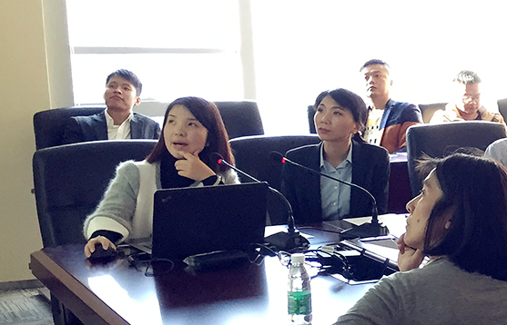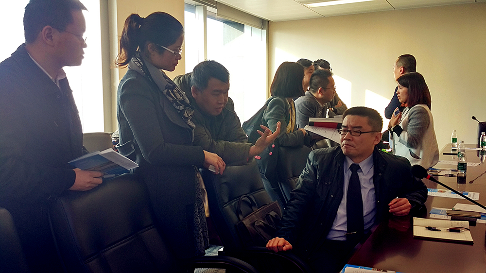 圖四 廣州南沙投資咨詢有限公司投資服務(wù)部總經(jīng)理李松寧與企業(yè)深入討論