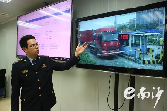 檢驗檢疫工作人員在介紹智檢口岸系統(tǒng)。