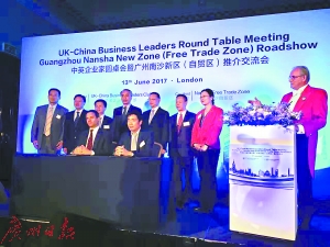 英國(guó)當(dāng)?shù)貢r(shí)間6月13日,中英企業(yè)家圓桌會(huì)暨廣州南沙新區(qū)(自貿(mào)區(qū))推介交流會(huì)在倫敦舉辦,南沙將為英國(guó)企業(yè)進(jìn)入中國(guó)提供“入口”。