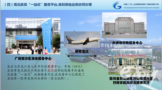 “證照分離”實(shí)現(xiàn)企業(yè)辦證更加便捷高效。南沙區(qū)選取企業(yè)反映訴求突出、審批頻次較高、改革預(yù)期效果較明顯、符合南沙自貿(mào)片區(qū)重點(diǎn)產(chǎn)業(yè)發(fā)展需求的132項(xiàng)商事登記后置審批事項(xiàng)進(jìn)行分類改革,加強(qiáng)風(fēng)險(xiǎn)評(píng)估和進(jìn)行動(dòng)態(tài)調(diào)整,解決“先照后證”之后的“辦證難”問題。圍繞行政審批事項(xiàng)分類改革、創(chuàng)新行政審批服務(wù)運(yùn)行模式、強(qiáng)化事中事后監(jiān)管三大改革任務(wù),全區(qū)提出了14項(xiàng)具體改革措施,細(xì)化制定了“證照分離”改革試點(diǎn)方案和優(yōu)化許可經(jīng)營(yíng)項(xiàng)目審批服務(wù)方式、深化商事登記便利化改革、加強(qiáng)事中事后監(jiān)管3個(gè)配套方案,形成了“1+3”的改革方案體系。 截止今年7月,共受理業(yè)務(wù)872宗,累計(jì)為企業(yè)節(jié)省辦理時(shí)間8440天,減少申請(qǐng)材料2981份??缡≌?wù)合作首創(chuàng)異地業(yè)務(wù)協(xié)同辦理。為積極響應(yīng)國(guó)務(wù)院關(guān)于東北地區(qū)與東部地區(qū)部分省市對(duì)口合作工作方案,方便企業(yè)跨區(qū)域投資辦事,南沙區(qū)先后與黑龍江省大慶市行政服務(wù)中心、中國(guó)(四川)自由貿(mào)易試驗(yàn)區(qū)川南臨港片區(qū)行政審批局、貴州貴定縣政務(wù)中心、江西龍南縣政務(wù)中心等市、區(qū)(縣)攜手打造政務(wù)“一站式”服務(wù)平臺(tái),在企業(yè)投資業(yè)務(wù)異地辦理領(lǐng)域開展合作,后續(xù)還將陸續(xù)推出企業(yè)投資、準(zhǔn)入、準(zhǔn)營(yíng)等多個(gè)方面辦證服務(wù)。