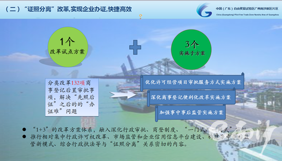 據(jù)了解,近年來,南沙區(qū)按照國(guó)家關(guān)于“簡(jiǎn)政放權(quán)、放管結(jié)合、優(yōu)化服務(wù)”的總體要求,以國(guó)家新區(qū)和自貿(mào)區(qū)“雙區(qū)疊加”優(yōu)勢(shì)為契機(jī),大膽探索、先行先試,先后推出多項(xiàng)全國(guó)、全省的創(chuàng)新示范,其中6項(xiàng)改革創(chuàng)新成果先后入選全省、全市復(fù)制推廣改革創(chuàng)新經(jīng)驗(yàn)。