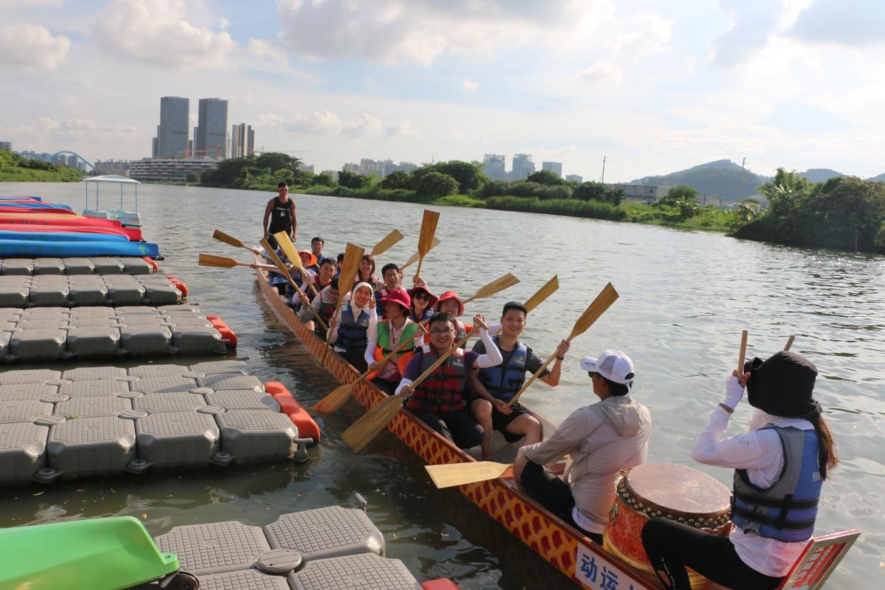 在劃龍舟的競技體驗(yàn)中,員工們通過不同“龍舟角色”的體驗(yàn),感受到了“舵手(領(lǐng)導(dǎo)層)、鼓手(中層干部)、槳手(員工)”在龍舟前行(企業(yè)發(fā)展)發(fā)揮的不同作用,也在“齊心協(xié)力、勁往一處使”的大汗淋漓之間飽覽了區(qū)內(nèi)基礎(chǔ)設(shè)施建設(shè)給大家?guī)淼娜缭娒谰啊?/p>