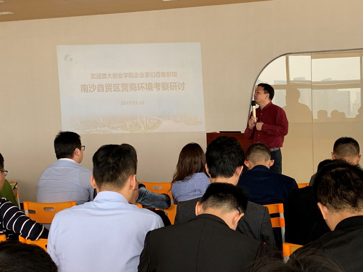 2019年3月20日下午,廣東省初創(chuàng)企業(yè)經(jīng)營者素質(zhì)提升暨南大學(xué)研修班一行70人,蒞臨南沙進(jìn)行“自貿(mào)區(qū)營商環(huán)境”考察,公司產(chǎn)業(yè)服務(wù)部副經(jīng)理郭慧帶領(lǐng)業(yè)務(wù)團(tuán)隊(duì)熱情接待了研修班一行。