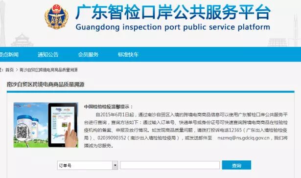 經(jīng)南沙自貿(mào)試驗區(qū)進出口的跨境電商商品質(zhì)量信息,可隨時隨地通過互聯(lián)網(wǎng)登錄廣東智檢口岸公共服務(wù)平臺(http://www.gdeciq.gov.cn/)進行24小時全天候快捷查詢。
